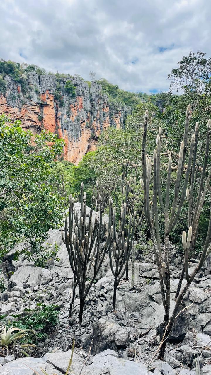 Visitaremos cavernas monumentais como a Caverna do Arco do André, Troncos e Cascudos, onde o Rio Peruaçu passa por dentro, criando espelhos d’água em tom verde-esmeralda que contrastam com as rochas carbonáticas de calcário.