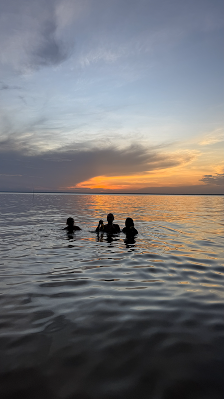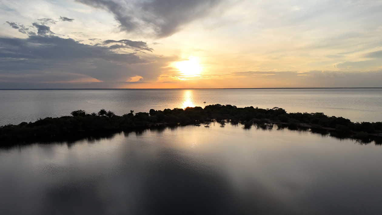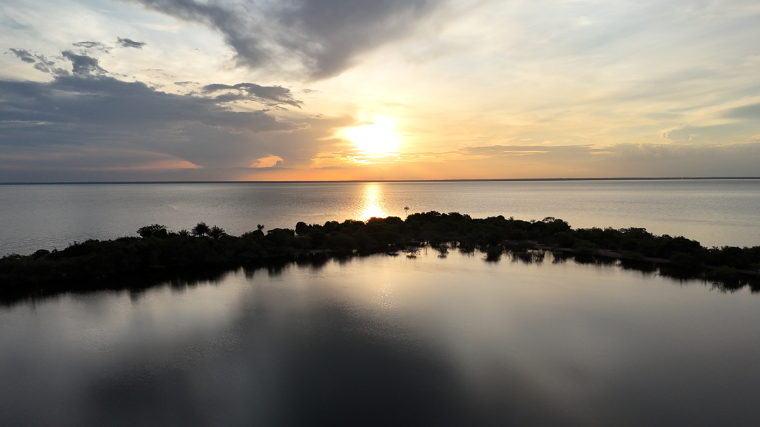 O passeio finaliza na Ponta do Cururu, para apreciar os botos e um lindo pôr do sol.